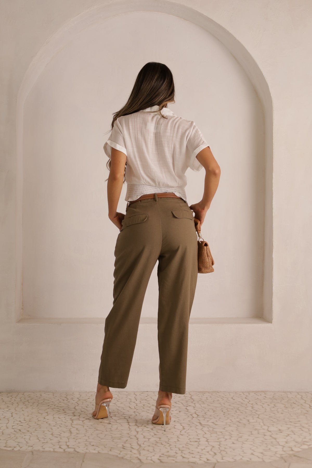 Style: Relaxed short-sleeve button-up top with a front twist detail for a laid-back yet polished look.