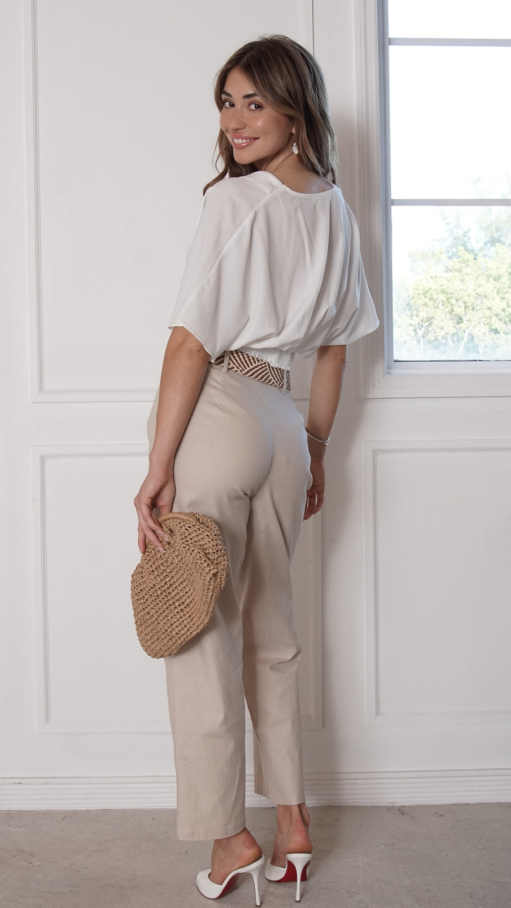 Style: High-rise straight leg pants with clean tailored finish and removable woven belt