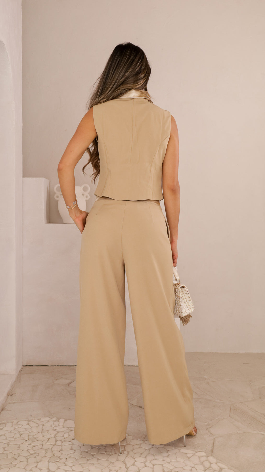 Style: Tailored vest and palazzo pants set