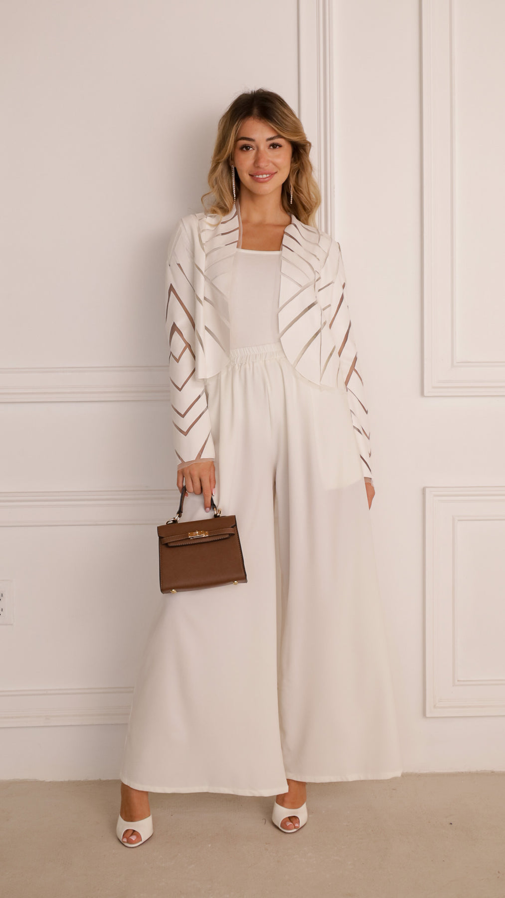 Style: Statement faux leather jacket with geometric laser-cut panels