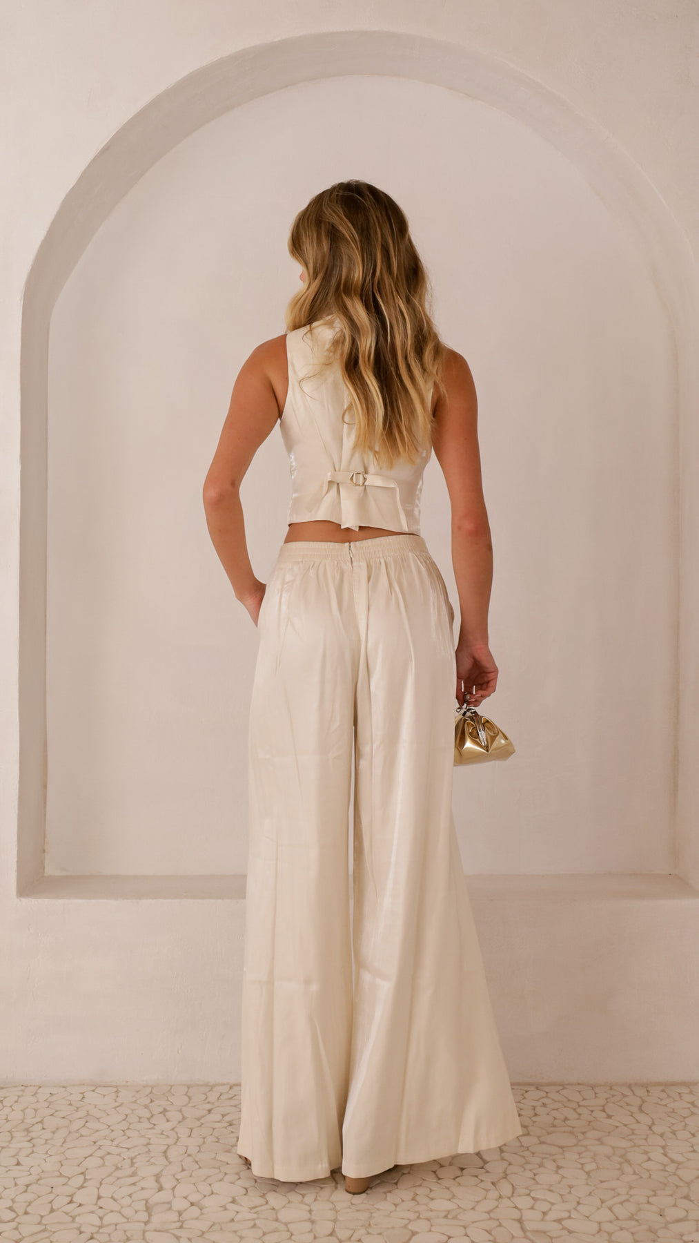 Bottom: High-waisted palazzo pants