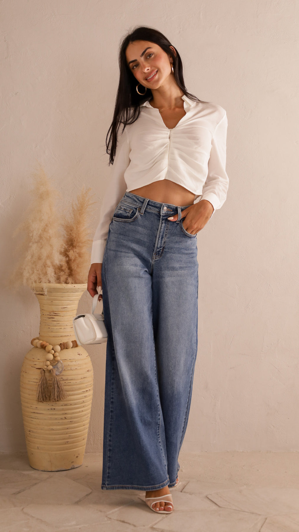 Style: High-waisted wide-leg jeans with a timeless silhouette