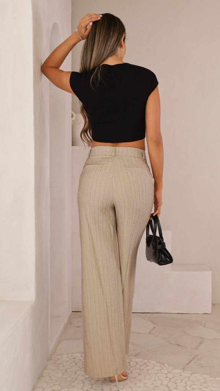 Fabric: Lightweight woven fabric with subtle vertical stripes