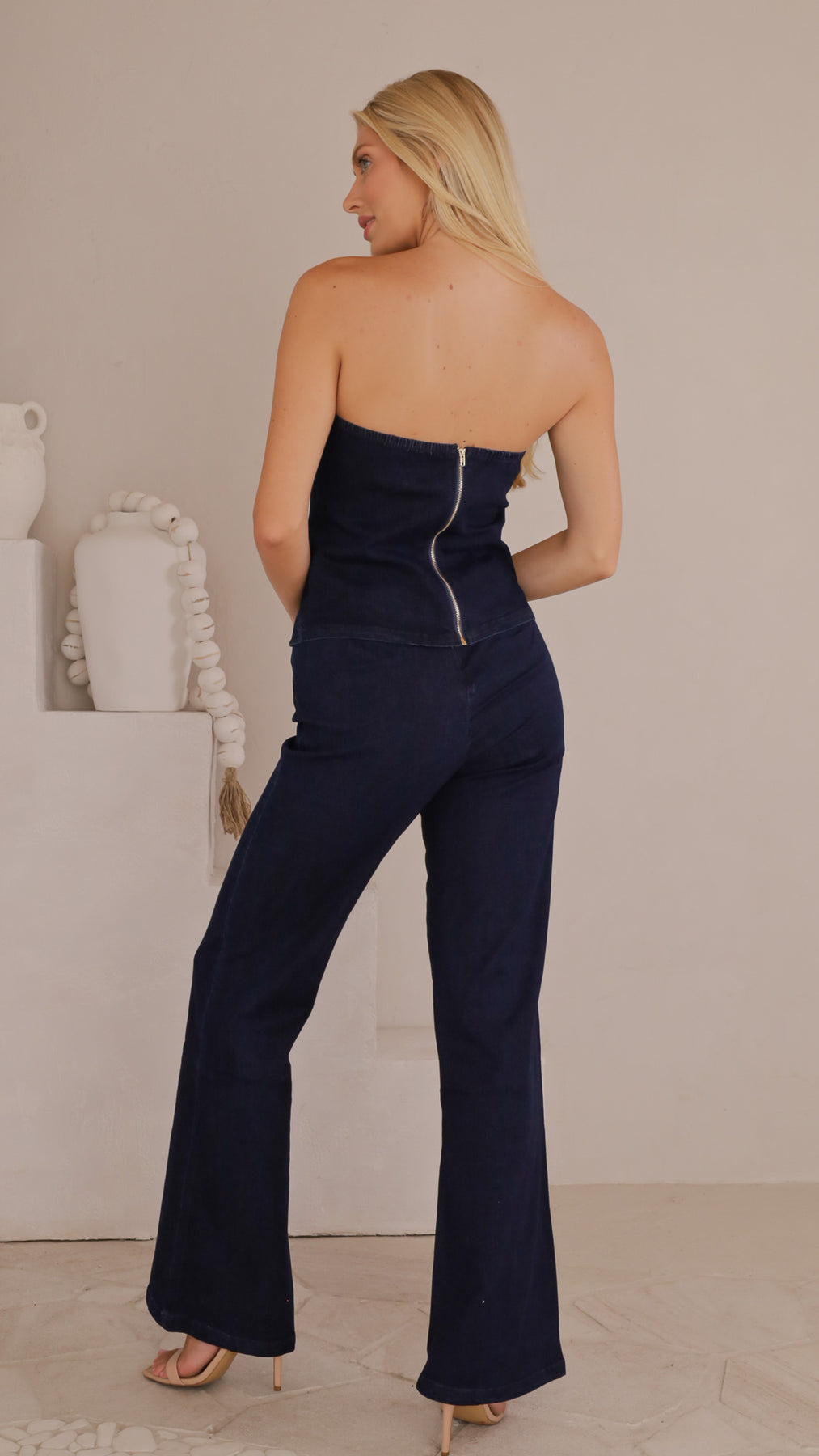 Fit: Fitted bodice with a relaxed, flared pant silhouette